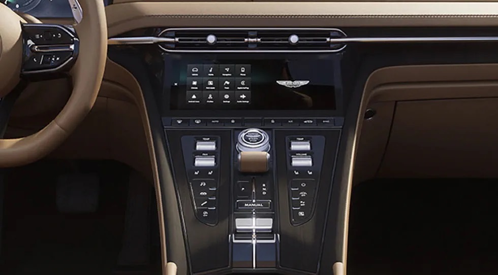 An interior lined with digital intelligence, stitched with smarter sound and pulsing with never-seen-before infotainment. DB12 Volante wraps your senses in technology. Lines your cabin with the optimum blend of analogue controls and digital technology. The handcrafted past meets the fine-tuned future.