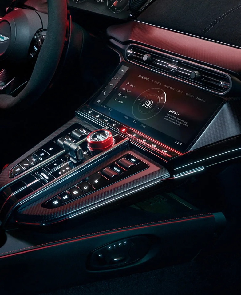The S cabin exudes sporting poise, defined by new interior refinements and assertive design cues that reflect the potency of Vantage S. Unique materials and advanced techniques – drawn from Aston Martin’s most innovative sports cars – set the tone. Digital fuses seamlessly with analogue. World-class luxury meets cutting-edge connectivity and craftsmanship. Step into the world of S. A letter like no other.